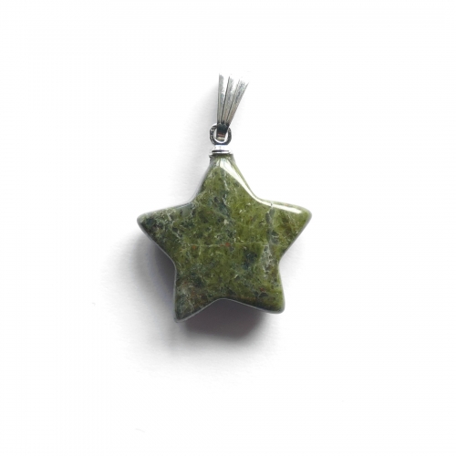 Bei diesem Artikel handelt es sich um ein Steinstern aus Unakit mit Metallöse. Die ungefähren Maße sind 20 mm. Bestens geeignet als herzliches Geschenk zwischendurch. Um den Hals getragen zeichnet sich der Anhänger durch ein zauberhaftes Erscheinungsbild aus. Da es sich bei den verarbeiteten Steinen um ein Naturprodukt handelt können Farben, Form und Musterung vom Beispielbild abweichen. Dazu passende Lederbänder und Silberkettchen finden Sie in der Rubrik Edelsteinschmuck - Zubehör. Verbraucherhinweis: Bitte bedenken Sie, dass alle beschriebenen Wirkungen wissenschaftlich nicht belegbar sind und daher keinen Besuch beim Arzt ersetzen.