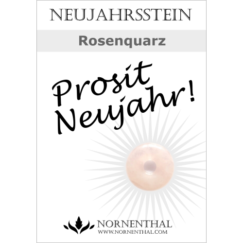 Hochwertiger Nornenthal Silvester Glücksbringer. Edelstein in Donutform in der Größe 20 mm geschützt im Druckverschlussbeutel. Inklusive Möglichkeit zur Überbringung persönlicher Wünsche auf der Innenseite. So wird es möglich mit Edelsteinen auch zu Silvester individuelle Freude zu bereiten. Der Kreis als Symbol für Vollkommenheit und Unendlichkeit soll seinen Träger an die Wiederkehr des Jahres erinnern und ihm dabei helfen in seinen Vorsätzen zu bestärken.