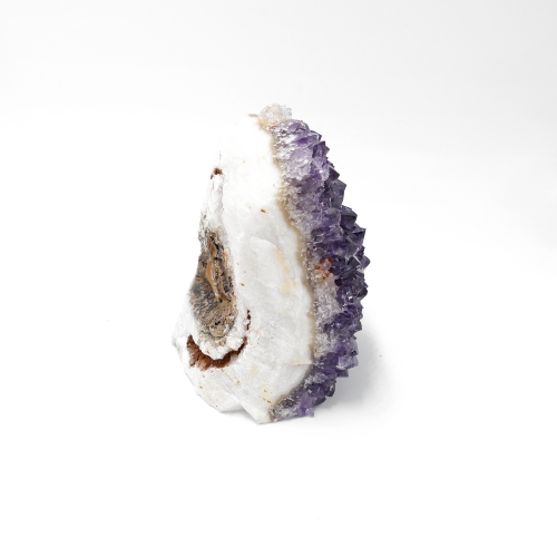 Amethyst besitzt eine reinigende, entgiftende und desinfizierende Wirkung. In seiner Geschichte wurde er gerne gegen Hautausschläge, einfache Hautkrankheiten und gegen Trunkenheit eingesetzt. Auf geistiger Ebene stärkt Amethyst die Konzentration und Denkfähigkeit und hilft bei Denkblockaden, Hemmungen, Aufstauungen, Grübelzwängen und schlechten Träumen.
