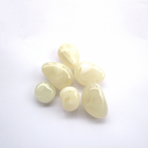 Bei diesem Artikel handelt es sich um Trommelsteine aus Friedenachat (weiß gebänderter Achat) mit einer Größe von 2-3 cm; Sie erhalten eine Menge von ~150 g. Die Trommelsteine eignen sich hervorragend zu Dekorationszwecken in Edelsteinbrunnen, zum Auflegen auf die Haut oder als Taschenstein. Da es sich bei den verarbeiteten Steinen um ein Naturprodukt handelt können Farben, Form und Musterung vom Beispielbild abweichen. Verbraucherhinweis: Bitte bedenken Sie, dass alle beschriebenen Wirkungen wissenschaftlich nicht belegbar sind und daher keinen Besuch beim Arzt ersetzen.