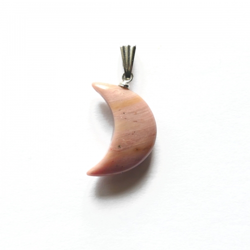 Bei diesem Artikel handelt es sich um ein Steinmond aus Rhodonit mit Metallöse. Die ungefähren Maße sind 20 mm. Bestens geeignet als herzliches Geschenk zwischendurch. Um den Hals getragen zeichnet sich der Anhänger durch ein zauberhaftes Erscheinungsbild aus. Da es sich bei den verarbeiteten Steinen um ein Naturprodukt handelt können Farben, Form und Musterung vom Beispielbild abweichen. Dazu passende Lederbänder und Silberkettchen finden Sie in der Rubrik Edelsteinschmuck - Zubehör. Verbraucherhinweis: Bitte bedenken Sie, dass alle beschriebenen Wirkungen wissenschaftlich nicht belegbar sind und daher keinen Besuch beim Arzt ersetzen.